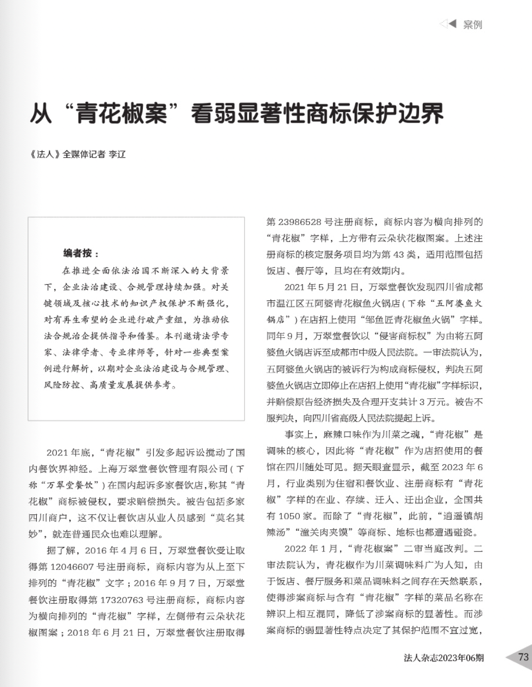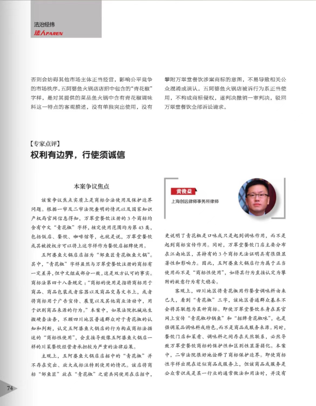 甘肃辉知简讯 | 辉知队黄俊益律师应“法治日报”旗下杂志邀请,就“青花椒”案发表专家点评